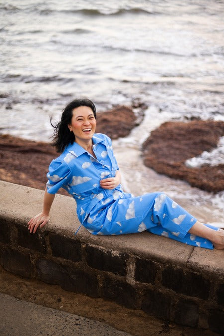 Sketched from the memory of a perfect summer day in Sydney - endless blue, soft clouds & the quiet euphoria of tilting your face up, eyes closed, to feel the sun - this in-house print captures that fleeting sense of calm and possibility.